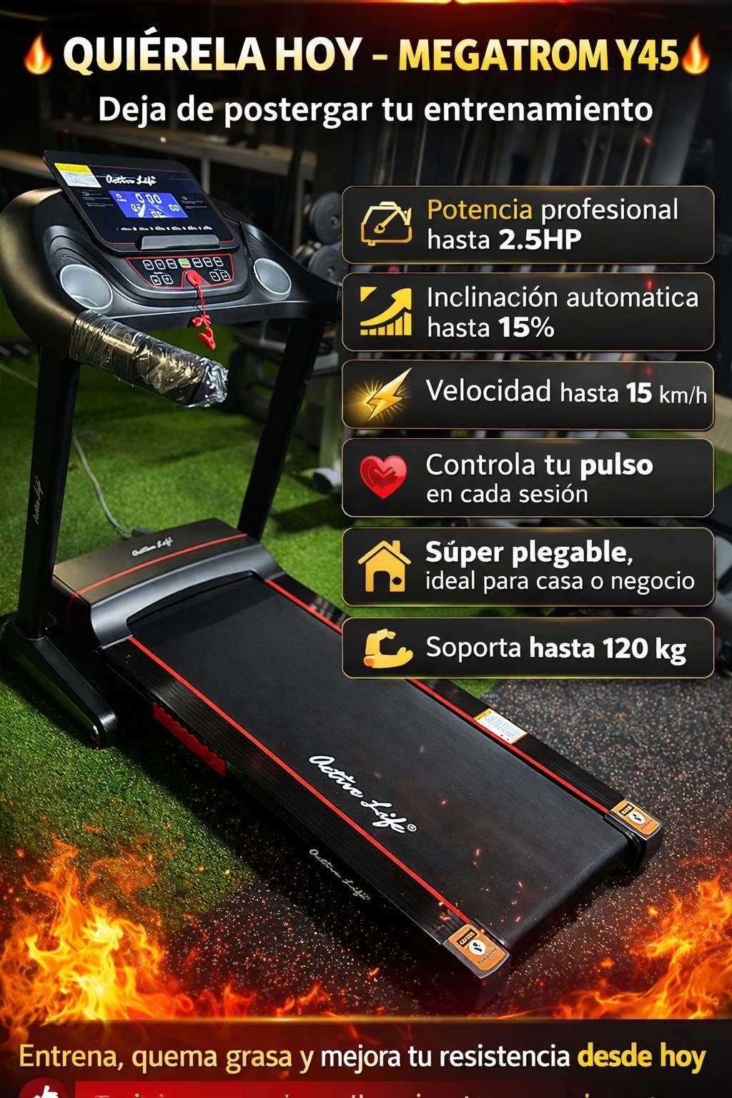 Con la MEGATROM Y45 entrenas cuando quieras, sin excusas y con resultados reales.