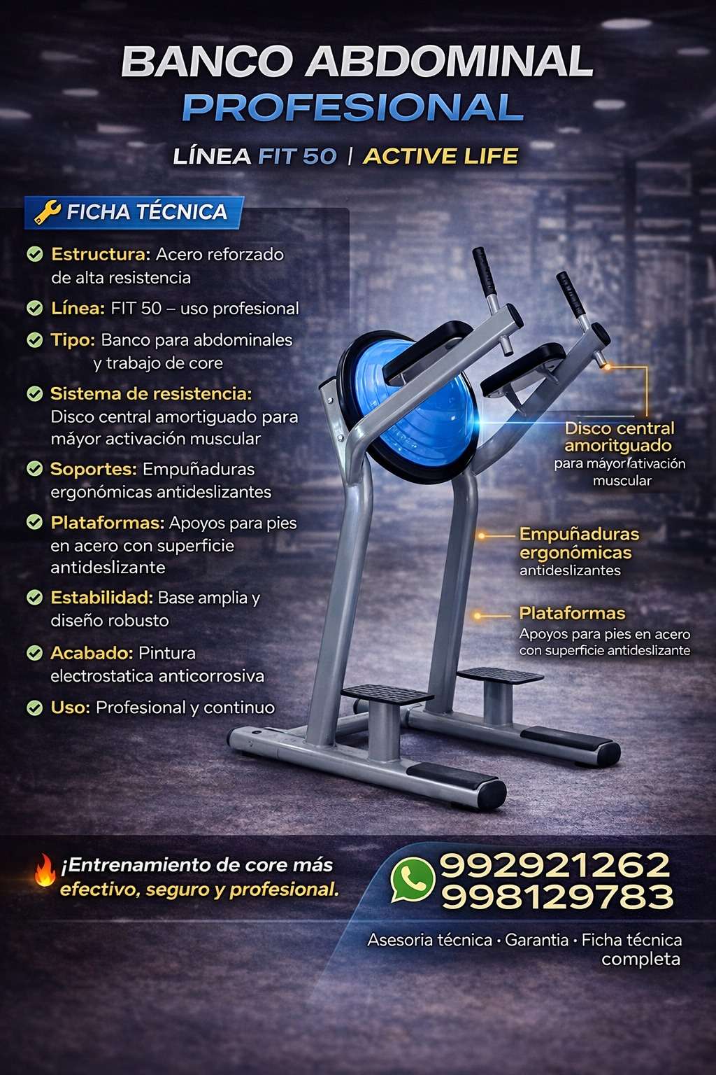 Tipo: Banco para abdominales y trabajo de core